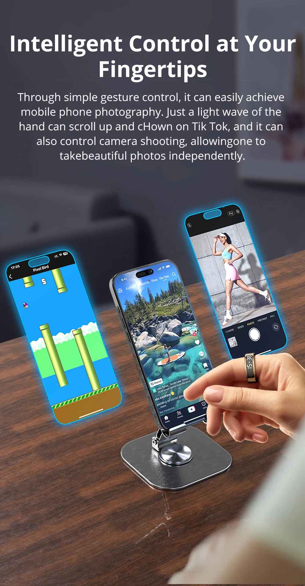 ❤️ Advanced Health Monitoring: Track your heart rate, blood oxygen levels, sleep quality, and activity metrics with precision sensors built directly into the ring. Stay aware, stay balanced, and take control of your wellness.